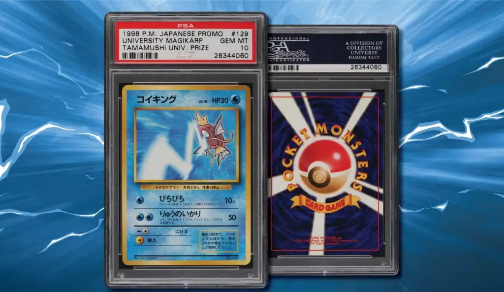 Contre toute attente, une carte Magicarpe figure parmi les cartes rares les plus recherchées. En 1998, l’éditeur japonais Shogakukan a lancé une campagne promotionnelle massive. Les gagnants recevaient cette carte Magicarpe spéciale, reconnaissable à son illustration distinctive.