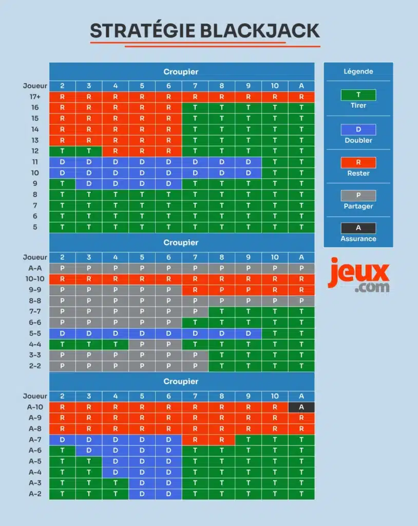 Tableau de Blackjack : maîtrisez la stratégie de base pour gagner plus de mains