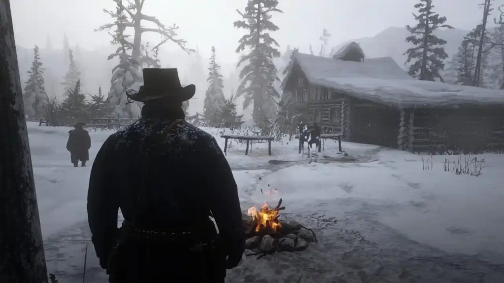 Le chapitre 1 sert de tutoriel prolongé. Vous ne pouvez pas explorer librement pendant cette section. Suivez simplement les instructions à l’écran et les marqueurs de mission. La tempête de neige limite votre visibilité et vos déplacements. Restez près de vos compagnons lors des trajets à cheval pour ne pas vous perdre. Pendant les fusillades contre les O’Driscoll, utilisez les couvertures disponibles et visez la tête pour économiser vos munitions. Le Dead Eye se débloque progressivement au fil des missions. À la fin du chapitre, la neige fond et le gang descend vers les plaines de New Hanover.